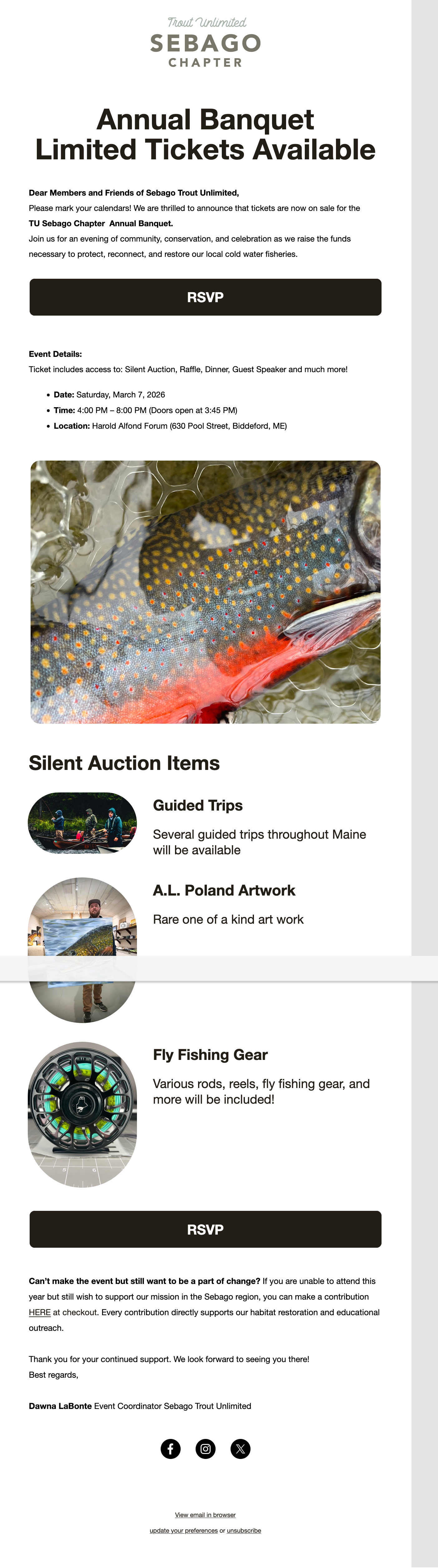 The Maine Council of Trout Unlimited works with our Chapters throughout the state to protect and restore the waters and habitat of coldwater fish.